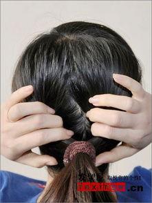 4. 盘起头发:将马尾分成两股,从中间开始盘起,直到发尾。