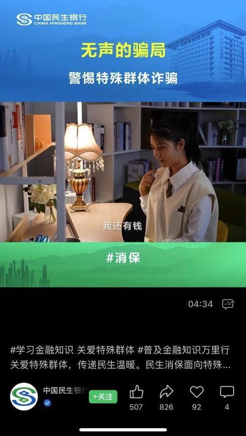 民生银行的视频内容丰富多样,既有关于理财、贷款等金融产品的介绍,也有关于银行服务的体验分享。以下是一些典型的视频内容: